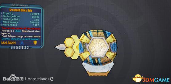 Black Hole,传奇版Maliwan新星护盾,特效为空盾后,会对周围敌人产生一个吸引力将周围敌人统统往主角发方向牵引并产生电属性新星伤害。需要注意的是,和其他新星护盾一样,Black Hole的新星伤害也需要将护盾充满值后才能再次使用。使用思路,不外乎就是故意站着让敌人打破盾,然后出新星伤害,由于牵引力可以导致敌人攻击动作被打断,这时候可以掏出回血枪,看着自己的血值回满,且电新星伤害十分可观,二周目下基本所有杂兵都是秒,三周目需要配合紫渣。再配合萝莉右系Blood Soaked Shield 技能加满,杀敌后回满100%护盾并扣除5%血量。掌握好节奏就是不停的反复新星,场面煞是欢乐。基于以上思路,将反弹和电系结合起来做一个跑图视频。
