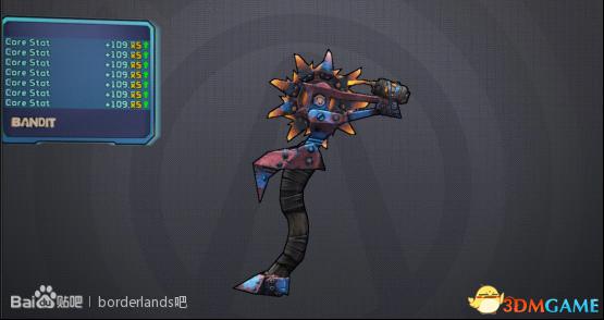 事先准备大疯子一枚(废话),要求:装备栏不满,武器栏4格全满,地上随意放一把武器,并自备Bandit车辆一部。开启技能后迅速爬上车子后座,然后不停的按C变换位置直到技能结束,之后你会发现,斧子依然在手,只能远程扔而不能砍人,这时候跳下车对着地上事先准备好的武器长按E会把地上武器替换到手上,然后装备栏里会出来这么一个诡异的玩意儿。