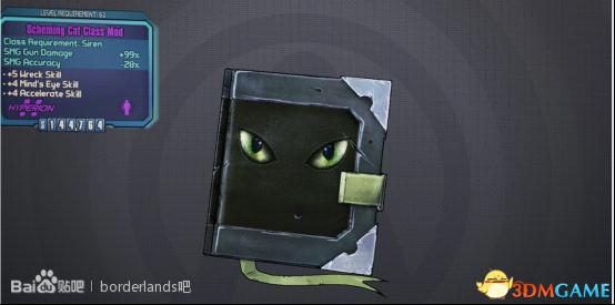 魔女mod中,Cat Mod拥有很高的SMG伤害加成,61级满编猫mod最高SMG伤害加成为99%,提升幅度十分可观。且该Mod对Accelerate,Mind’s eye等输出技能加成,但该Mod有很致命的SMG精准扣除,使得在混乱局面下很难瞄准敌人暴击点,这点可以通过Hyperion厂SMG来解决,尤其推荐传奇版H社SMG Bitch,抽脸爽歪歪。此外也推荐Cat Mod配合SandHawk加Bee组合用来刷无敌boss,效率完胜传奇魔女,甚至可以和传奇大兵一比高下(论单发子弹伤害魔女绝对比大兵高,但是整体时间可能会输在换弹速度和走位上)