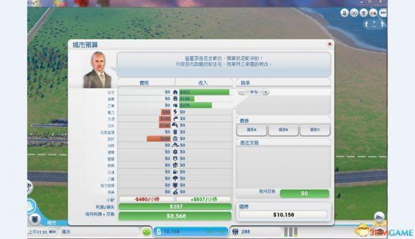 第五步 在预算面板住宅税率点增加到10%,你会发现预算面板住宅收入增加了,收入数值是多少记住。