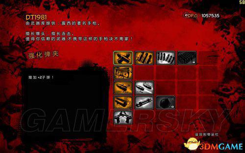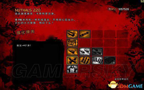后期的不二神器,也是后期最重要的枪械,由于本身子弹数偏少,升级子弹数是必须的,再配合玩家升级里面的全子弹数升级,相信当你打到快通关的时候,这把枪应该已经有30多子弹容量,配合冲锋枪,相信打怪已经不成问题,绝对推荐所有点都加!