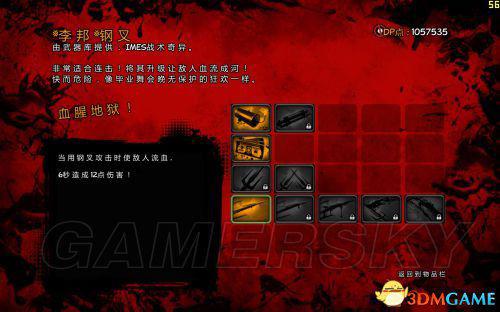 我只升级了三个点:伤害、流血和击杀奖励,其实如果完全不升级的话也对进程影响不大,这武器我觉得就是一个鸡肋般的存在,当然你偏爱这武器的话,最好多多花一些点放在流血上,其他功能不升级也罢。