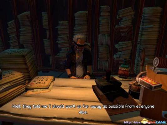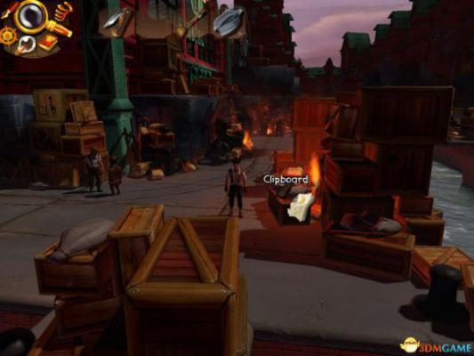 step5.进入左侧的木门,看见一位瞎了眼的盖邮戳的守卫,与其对话后,偷取了他的戳,此时他没法工作了,唯一的乐趣就是跟阿曼达聊天了。另外还可以盗取桌面右侧文件上的“胭脂”!最后就是收音机上的“火柴盒”!