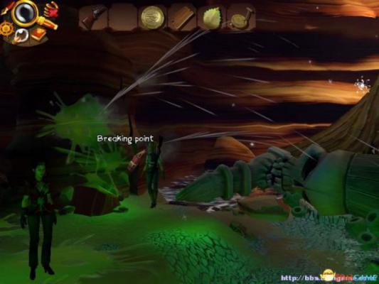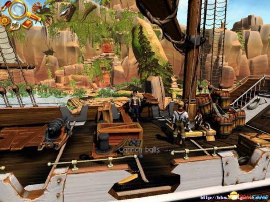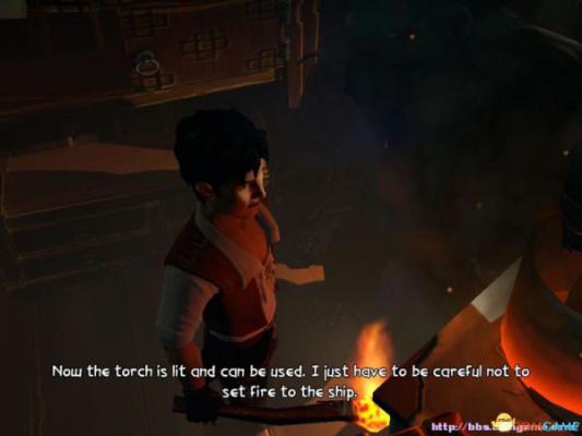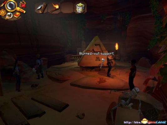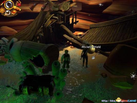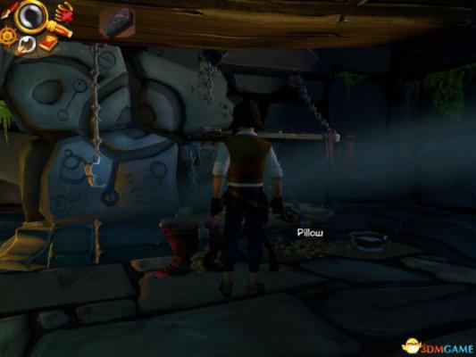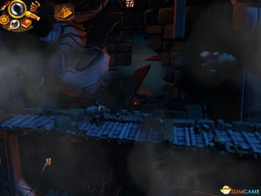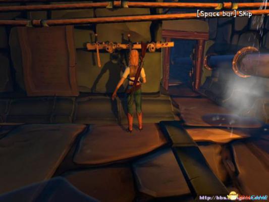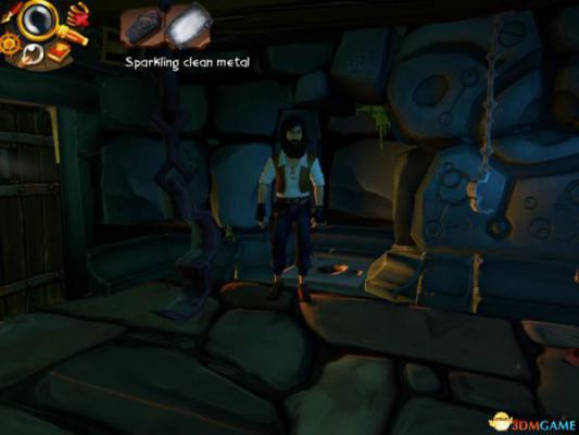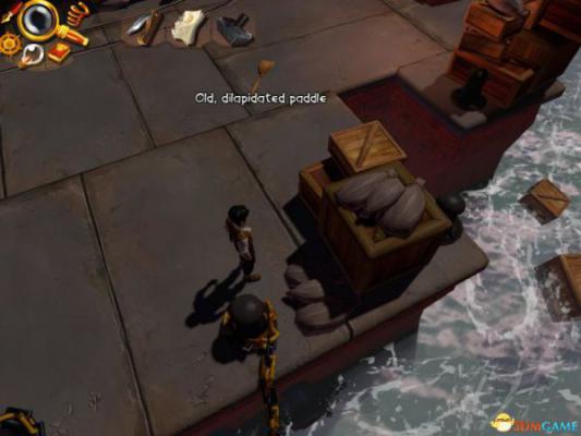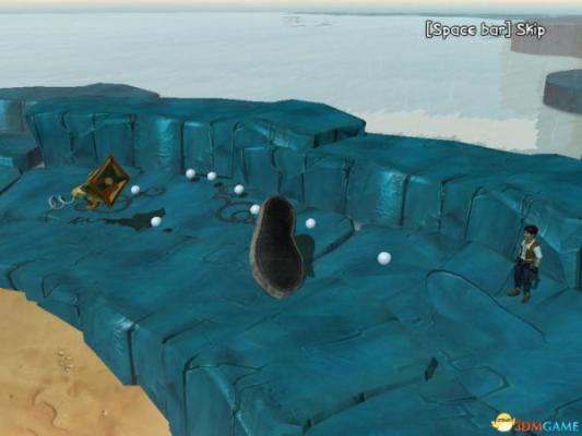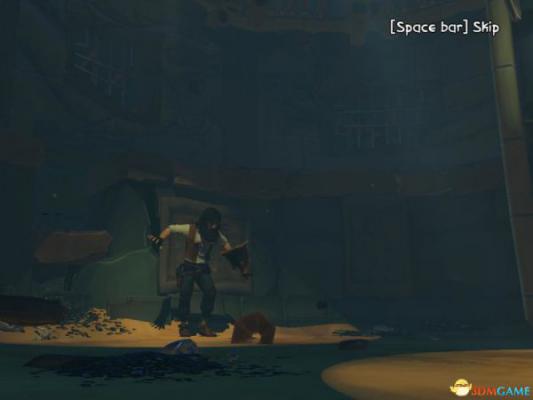 step8.走到炸药包前,对着它使用火药枪射击,随后会进入动画,阿曼达击爆了炸弹,水流填充了整嗰墓穴,骷髅船随即被水推高至洞口。
