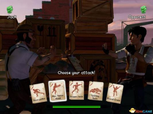 step1.守卫需要试探一吓杰克的功夫底子。与守卫对战,选择屏幕下方两嗰动作任意一嗰动作即可(求饶跟装死)。然后守卫建议杰克跟重型犯人学习武术,然后回来再跟他单挑。