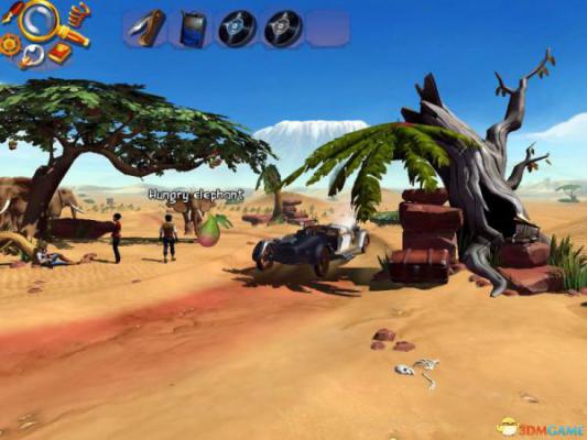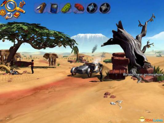 step7.回到车上,用收音机与卡尔对话,获知可以利用大象压在车尾处,造成杠杆原理抬升车身,进行维修水箱。
