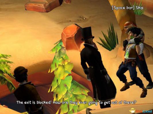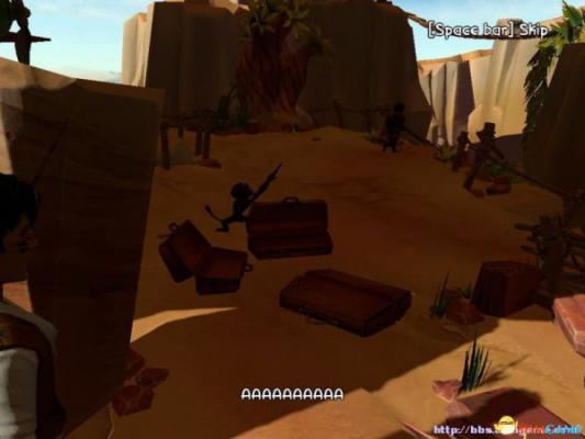 step19.继续留在山顶,把装有猴子的大皮包放在乌巴蒂他们的行李堆附近(可能无法正常互动,试多几次),当矮个子泰利打开皮包,就被拿着枪的猴子吓跑了。