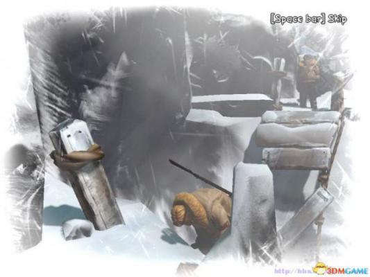 step1.三人走入雪山后,控制杰克沿着山路直走,后面两位女士也会跟上,到达一山洞前,这里开始就需要防寒衣服,用刀子解开捆绑衣服的带子。