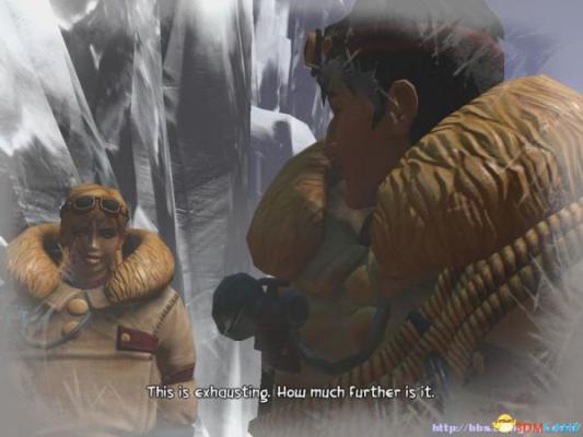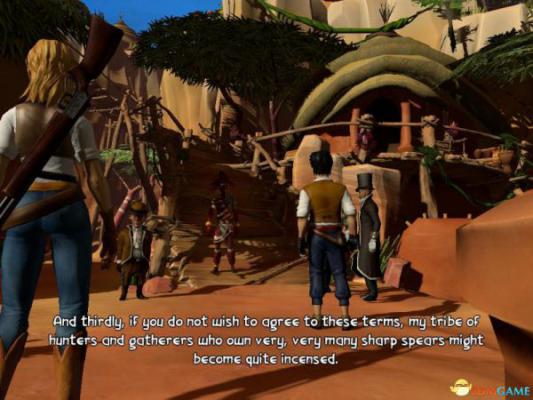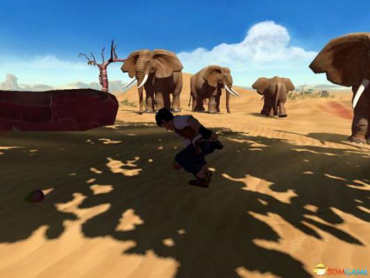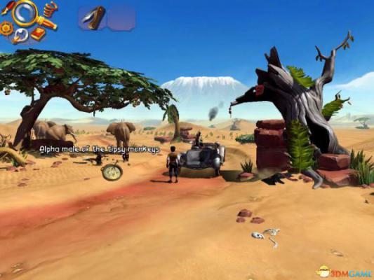 剧情:三人驾车来到乞力马扎罗山下的一嗰小村庄,而卡尔就早早地驾船而至了,原来骷髅船已经加装了大马力螺旋桨引擎了。来到村庄,通向乞力马扎罗山顶的道路就在一武术竞技场后,但是要击败土著武术家才可以同行。另外三人也没有良好的登山设备,冒然上山,显然不太实际。