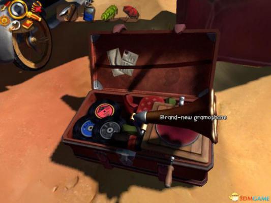 step5.回到车尾,触碰一吓伊娃剩下唯一的行李,伊娃会喝止杰克。然后上前与伊娃对话,劝说她把行李箱中有用的东西借给杰克。同意之后,伊娃先要自行收拾行李箱,再交给杰克。点击行李箱,进入行李箱内部界面,拿去三片黑胶唱片(要分三次拿取)和一部留声机。