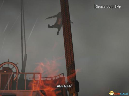 step4.矮个子又醒过来了,而且往前移动了,他停留在靠近大炮的位置。射击大炮的导火线(既然那么准……两枪应该可以解决两人了吧),大炮发射炮弹所产生的后坐力将矮个子撞飞到海里。