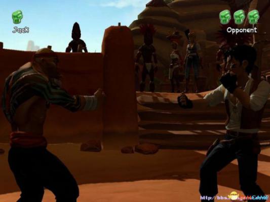 step24.没有了头骨杀手阻挠,杰克就可以到竞技场挑战最终的土著武术家了(对方两格血)。不过也是会输,所以就随便打打即可。