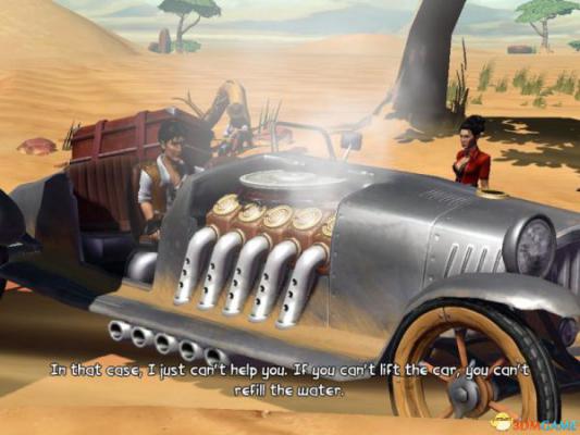 step3.坐上跑车,用收音机与卡尔对话,询问维修车辆的讯息。卡尔告诉杰克,现在车辆是因为水箱爆掉了,所以要用另外一样东西来顶替(汽油罐),但是水箱是在车的底部,要维修的话要抬起车辆。