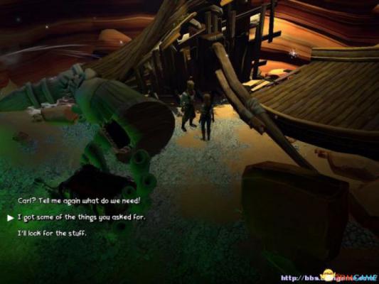 step15.然后继续与卡尔对话。获悉车辆的汽油已经不够,而且骷髅船也不足以到达上游,所以需要新引擎。