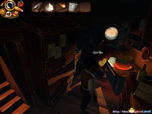 step30.带着面具的杰克现在走近猴子把守的储藏室,不会被驱赶出来,而且还可以拿走防寒衣物。