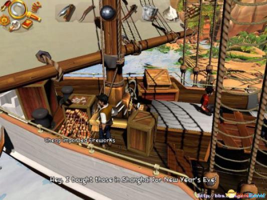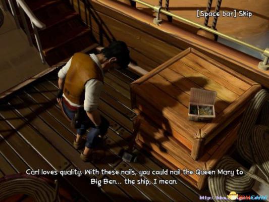 step7.然后跟卡尔对话,交付所有东西,卡尔就会制造出手摇式锯,帮骷髅船解困。卡尔跟伊娃登上了骷髅船。
