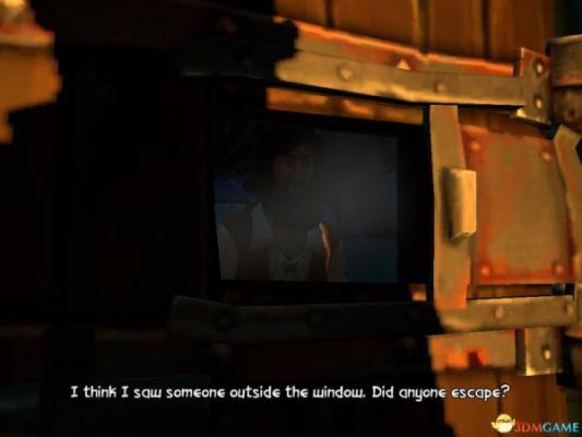 step5.然后走到木门前,点击木门,与守卫对话。选择“I think I saw someone outs the Window”(我看见有人从这窗逃跑了)。守卫马上通知囚室窗户外的探射灯把光线对准杰克所在囚室的窗户。