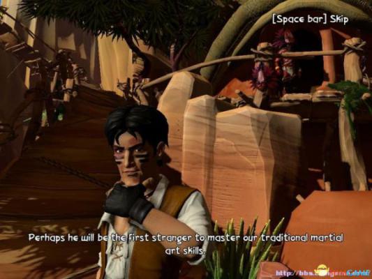 step3.再次迈入武斗场,被告知,要参加武术竞技,就先到酋长听取参加武术竞技的条件。酋长告诉杰克先,先要在脸上要画有图腾,这才算尊重比赛。然后即可回到两嗰女士身边,要求她们其中一人为杰克画上图腾,随选即可。然后再找酋长,酋长就告知杰克,参赛要$10……(N年前,到非洲一嗰部落参加一场中式的武术友谊赛,居然要收$10/场的参与费。这句话,内容好像很多吖……)