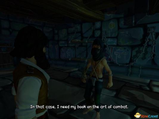 step9.接着穿过炸碎的墙,与武术师傅(红莲爪)对话,得知其需要的一本武林秘籍(红莲爪 著),而这本秘籍正正是被守卫拿去作为损坏椅子的垫子。