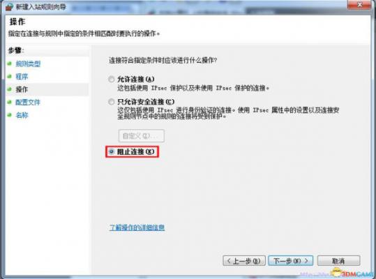 然后选中“阻止链接”,下一步。