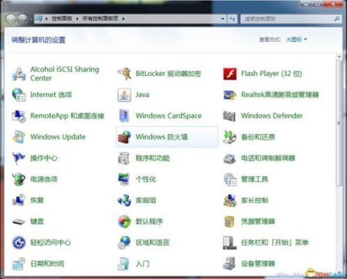第一步:点开始-控制面板-Windows防火墙。