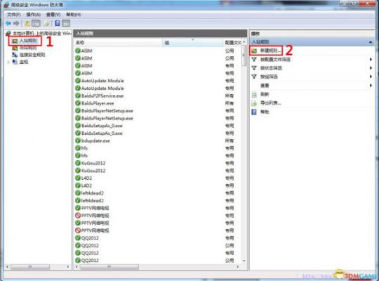 PS:本教程以WINDOWS7为准,XP和WINDOWS8差不多,找不到系统自带防火墙请移步百度搜索!