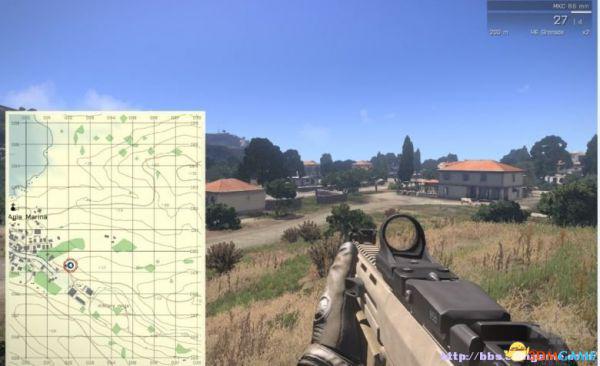 @tao_foldmap_a3,这个mod是开启Arma3的小地图,可以让你不展开大地图的情况下,边行动边看地图,虽然有些粗糙,但是还是有用的。如图: