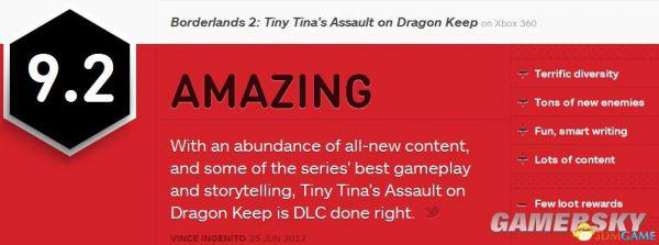 这部DLC里面拥有着丰富的全新内容,还有《无主之地》系列里面最棒的游戏体验和剧情叙述,为“小缇娜的龙堡之袭”叫好。