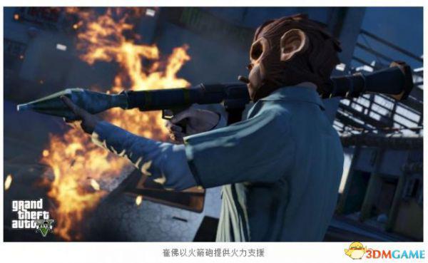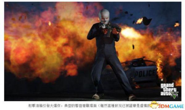 在枪战中一样可以随时切换自己操作的角色,例如当目前操作的角色被警察火力压制时,可以切换到不同位置的角色给予火力支援。示范中就切换到位于制高点的崔佛,拿起火箭炮轰击躲在掩体后面的警察,或者是以狙击枪击毙警察等。在解决掉现场所有的警力之后,3 人随即搭上拖吊车前往另一处偏僻的停车场,放火烧掉抢劫用的拖吊车,搭上事先准备好的接应车辆扬长离去。