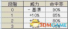 “技能槽每增加一段,虽然威力也会有所增加,但命中率确在不断往下落。”我们可以根据下面的插图来加以了解。