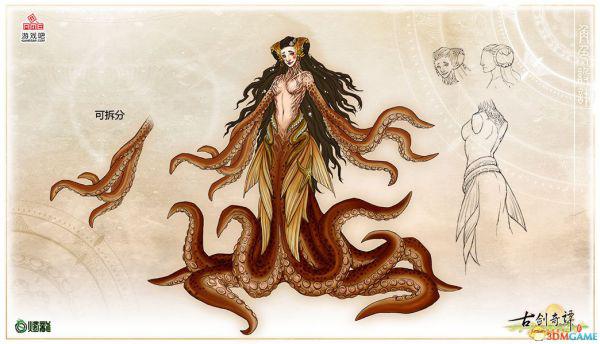 下图中的BOSS是蜃精玉怜。这位BOSS以其空前绝后的审美,认定自己是世上最美的女子。根据设定图,蜃精上身的触手是其特定的可以被拆分的部位。将触手拆分之后,这位“美女”会有怎样的反应呢。这里卖个关子,还是请玩家在实际游戏中体验吧。
