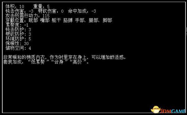2013.5.28:更新适用版本至汉化1.2版,调整文字结构,修复棉质内衣套装的查看问题,新增套装【沙滩休闲套装】【格斗紧身皮装】,增加物品【望远镜】的手工制作方法!