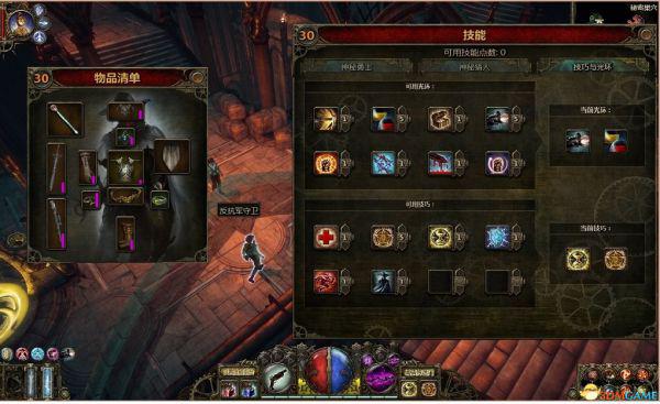 装备都是一路打过来爆的暗金装备,铠甲没打到好的,戒指有一个是绿色套装。武器附魔以暴击率为主,其余装备以法术强度、意志、爆伤为主,附了一个击中回魔的。技巧选择了时间凝固和绝处逢生,因为高输出+吸血,时间凝固的时间就够我杀人加回血了。光环也没啥特别好的,就选了视野清晰和保存力量。