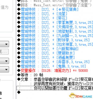 第三,情节。那个我们以古墓派为例。选取全真教郝大通和赵志敬的方框,在第二页上,有一个条件项,等级大于12,我们依据情况修改下,保证发生古墓剧情。然后顺剧情,我们被废除武功。。。。这个太惨痛了,我们不要。