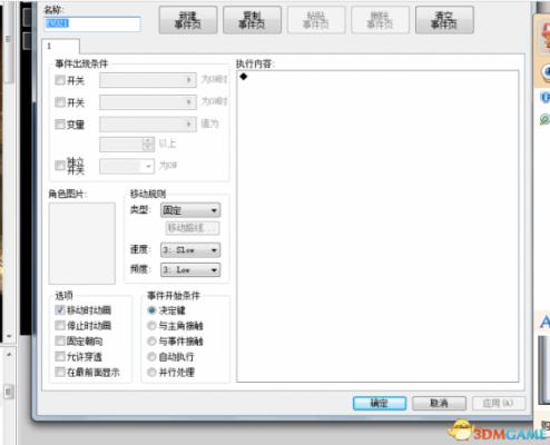出现条件不用选,这样有点麻烦,需要设置一个新的条件。我们空着就可以了。下面的事件开始条件默认就可以。在右侧的事件代码那里我们右击,选择插入。