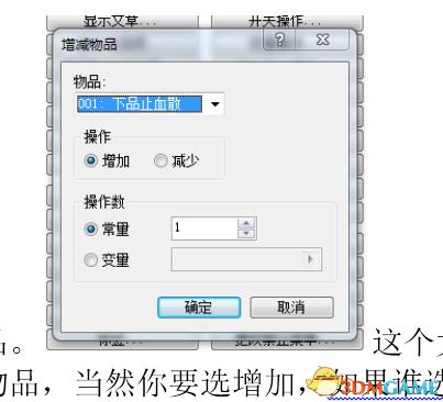 这个大家都会了吧,99吧,消耗品之类的,还有武功秘籍,任务物品,当然你要选增加,如果谁选减少。。。这下任务因为物品卡住就不怕了吧。另外武器和防具也是一样的。大家不要太狠,轩辕剑弄个99把啥的。。。