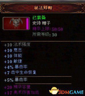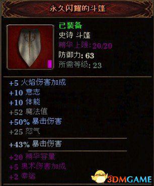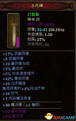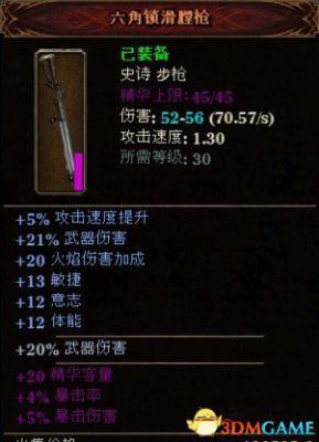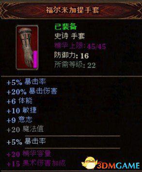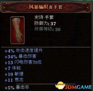 主要属性:精华容量30+,暴击5%,武器伤害+4,武器伤害+20%,攻击速度+6%,元素伤害+10,暴击伤害+44%