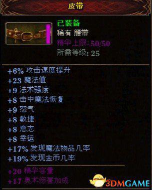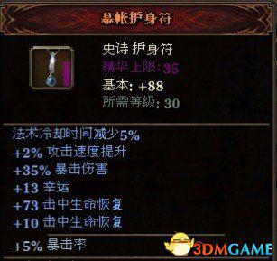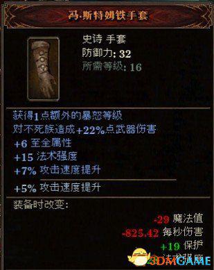 主要属性:元素伤害+10,精华容量30,全技能+1,攻击速度