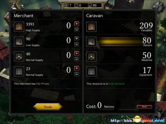 游戏中的资源主要是金钱,食物,药品和武器。但是木头,金属,绳子,油,矿石,肉,药草等等作为制作食物,药品和陷阱的资源也是不可或缺的。