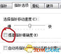 跳出新窗口后点击上方的"指针选项"菜单,如下图把"提高指针精确度"前的勾取消掉,完成后,整个WIN7系统的鼠标加速功能将彻底关闭: