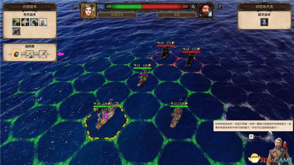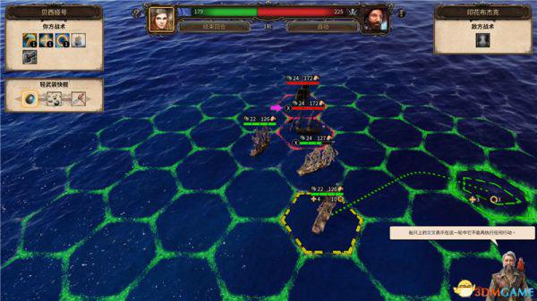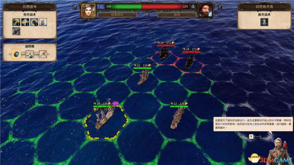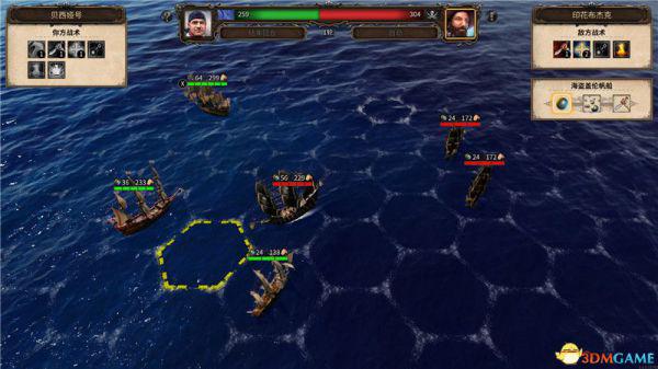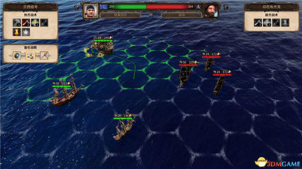 再来说移动方式,所有船直行和转弯行走的行动点消耗是相同的,换句话说,每个格子消耗的行动点是相同的。