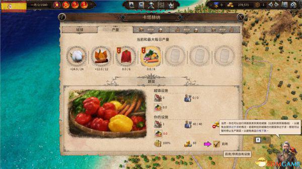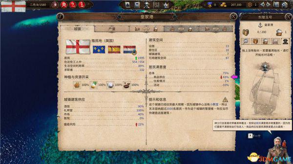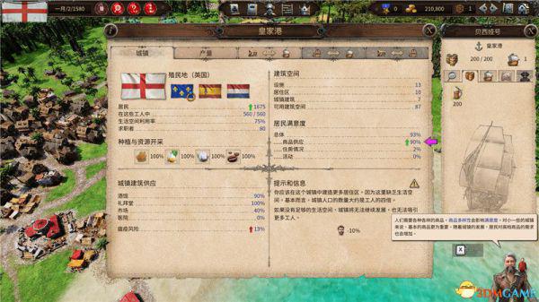你可以在信息面板中找到它隶属的国家,以及当人口,商品产出,资源和社会满意度情况。