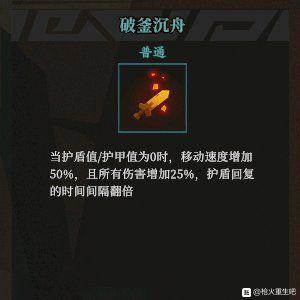 在《枪火重生》这款游戏中,有很多的秘卷,这些秘卷都能以不同的效果提升或削减玩家的输出或者生存能力。破釜沉舟就是一个有着限定条件才能生效的卷轴,玩家“49475147”带来了《枪火重生》破釜沉舟秘卷组合推荐,感兴趣的小伙伴就来看看吧。