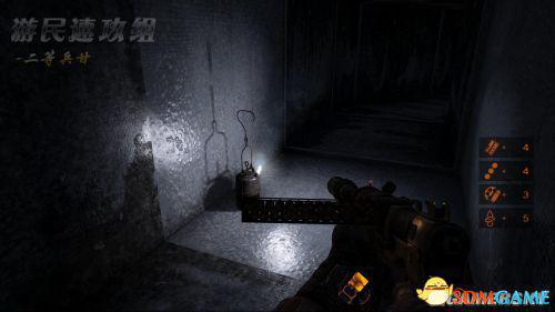 道德点6:救下险些被吊死的帕维尔后前进,从掀开下水道盖后来到电梯处,先别急着进入电梯,来动左侧一个布满蜘蛛网的房间,里面有两具骷髅,触发道德点!
