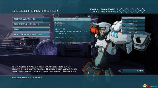 海根·霍金斯(部队核心):武器(散弹枪)、能力(靠近敌人的时候,射击会造成更大伤害;拥有更多生命值)