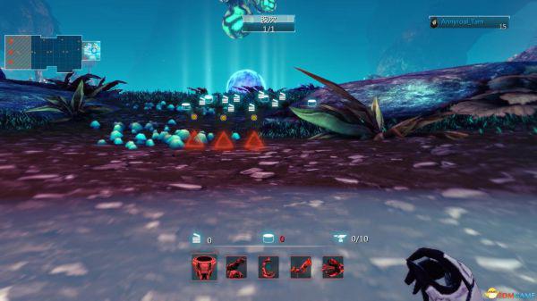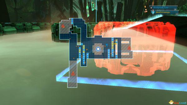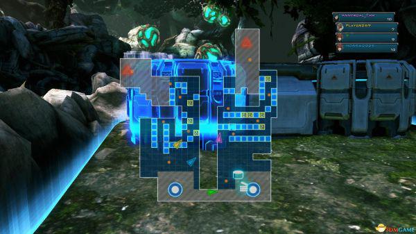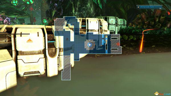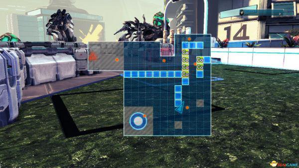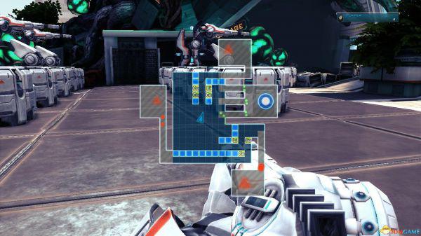 进入战斗平台(蓝色光圈范围示意可以摆放塔防道具,一定要留有一条通道让敌人内进到核心),到核心附近捡取圆台和炮塔,按“回车键”开启该波攻势。