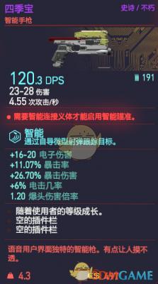 《赛博朋克2077》四季宝枪械属性: