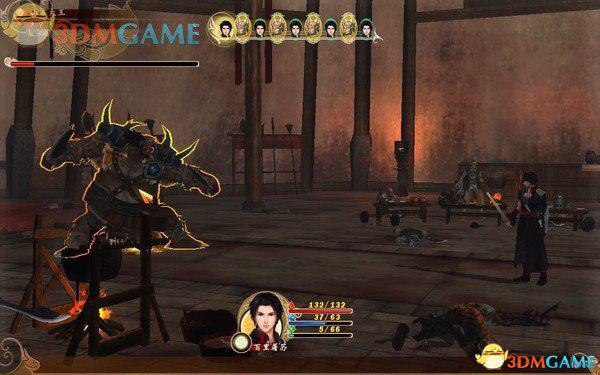 屠苏一脚踢开主厅的大门,见山贼们正在里面饮酒作乐,他随手拔出捕快的佩刀掷杀了一名,随后和山贼们战作一处。这里是三连战,山贼大王在最后一轮登场,开始只能打到前排的小贼,后面的大王会提升他们的土属性,注意屠苏的血量,用普通攻击慢慢磨杀。将小贼杀光后,用特技和法术来打大王,但在他呈现土属性的时候别用法术,因为屠苏都是火属性的法术,火生土,反而会给他加血。