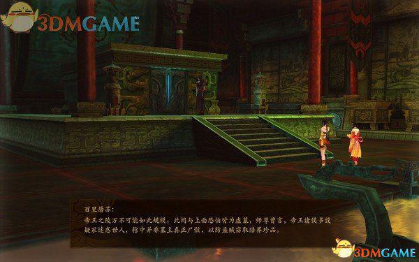进入墓室发现被盗的痕迹,墙边有三块石头,它们的移动是互相关联的,按中、右的顺序推动,将三块石头全部推到墙里,正中的石棺移出一条地道。穿过甬道迷宫来到兵马俑大厅,击败铜将军来到摆放棺椁的大殿,棺椁的门是紧闭的。在大殿两侧共有四块石板,随便找一块调查,上面会按一定顺序闪现一至四点不等的图案,记住点数和顺序,比如1342的话,就分别调查四块石板,先按有一点的石板,再按有三点的石板……以此类推,棺椁的大门便会开启。