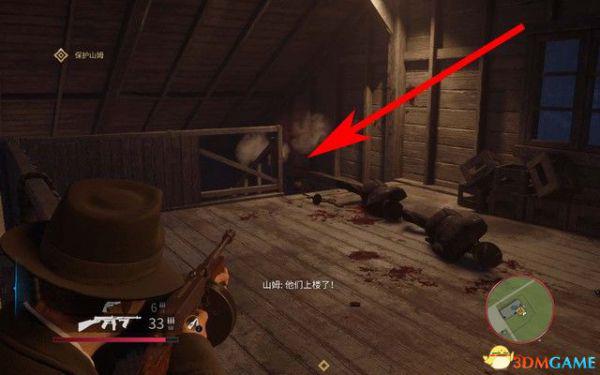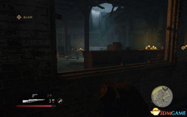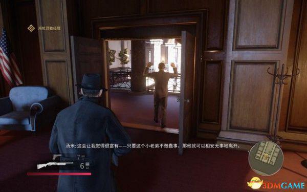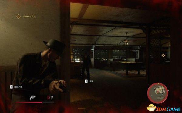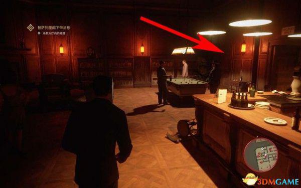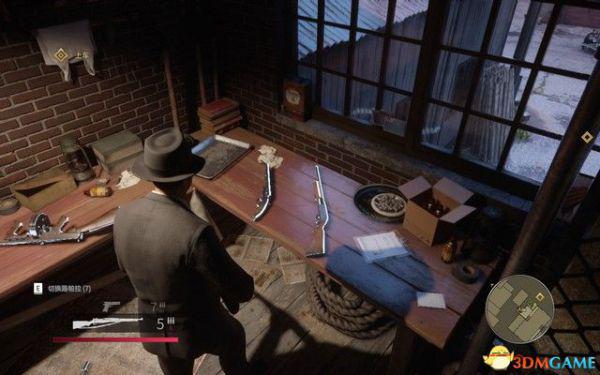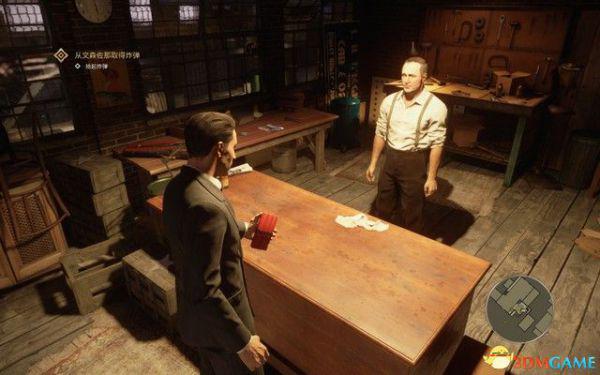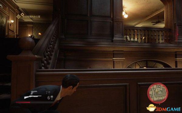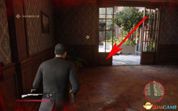 去文森佐的办公室,拿上手枪,然后对着右侧的靶子假装射击后,拿上子弹去找山姆和保利。